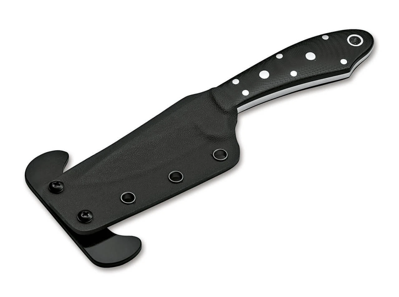 Der für seine ausgefallenen und innovativen Entwürfe bekannte Custom-Messermacher Mickey Yurco besitzt ein unvergleichliches Gespür für Ergonomie und außergewöhnliche Lösungen. Das Böker Plus Backdrop bildet da keine Ausnahme und überzeugt mit einem auf Geschwindigkeit und Flexibilität ausgelegten Konzept. Die passgenaue Kydexscheide kann mit dem beidseitigen Haken in der vorderen Hosentasche, mit der Lederplatte in der Gesäßtasche oder mit der Kugelkette als Neck Knife um den Hals getragen werden.