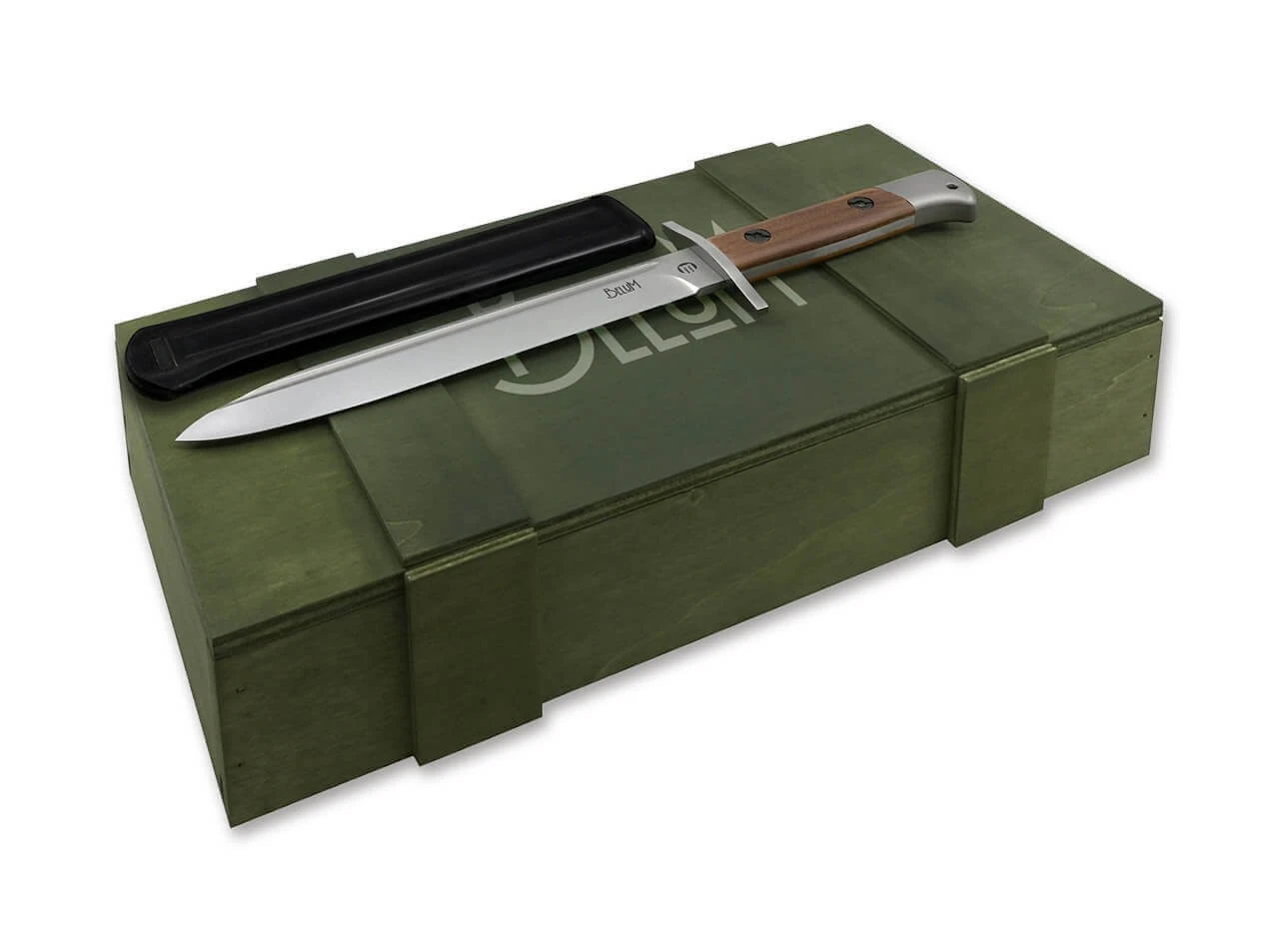 Das feststehende Maserin BeluM wurde zum Gedenken an Giuseppe „Belu“ Maserin (1885-1972), dem Urenkel der Familie Maserin und ein hochdekorierter Kriegsveteran, entworfen. Als Vorbild dienten die Dolche der italienischen Armee, die im Ersten Weltkrieg verwendet wurden und aus modifizierten Bajonetten des Typs Carcano 1891 hergestellt wurden. Herausgekommen ist ein starkes, stabiles Messer aus rostfreiem N690–Stahl mit einem Griff aus Santosholz und einem 3D-gedruckten Knauf, so dass moderne-Materialien mit der Arbeit erfahrener Handwerker im BeluM einen harmonischen Einklang finden. Lieferung mit hochwertiger Lederscheide und Holzschatulle im Militärstil.