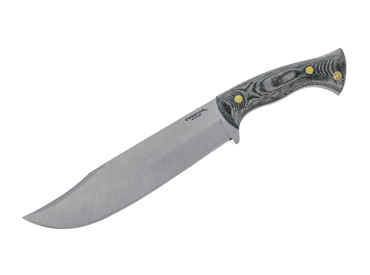 Wer das eindrucksvolle Condor Plan A bei sich hat, braucht ganz sicher keinen Plan B mehr! Die massive Klinge aus nicht rostfreiem 1075 Kohlenstoffstahl ist für den Einsatz als Haumesser, Standhauer oder großes Campknife prädestiniert. Das griffige Micarta der Beschalung und der hinten leicht gekröpfte Griff sorgen für ausgezeichnetes Handling. Lieferung mit Kydexscheide mit Leder-Gürtelschlaufe.