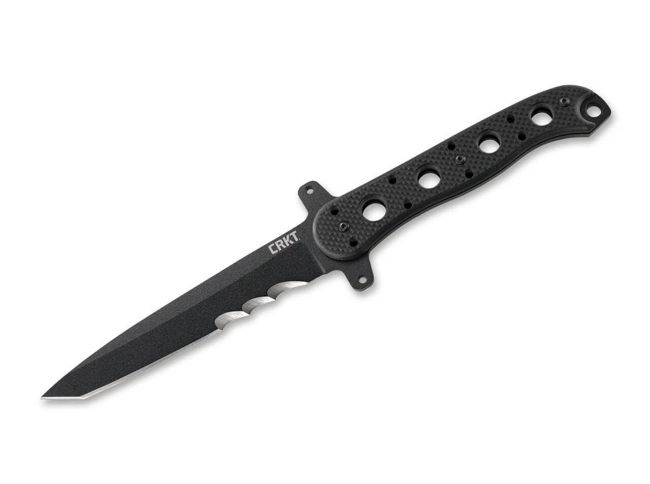 Die beliebte Taschenmesserserie M16 von CRKT wird mit dem M16-13FX um ein feststehendes Messer erweitert. Entworfen von dem verstorbenen Messermacher Kit Carson, behält es die ursprünglichen taktischen Merkmale der M16-Serie selbstverständlich bei. Die pulverbeschichtete Tanto-Klinge mit Teilwellenschliff wird aus SK-5 gefertigt, einem modernen Kohlenstoffstahl mit exzellenter Schnitthaltigkeit. Als feststehende Klinge ist sie auch für gröbere Arbeiten bestens geeignet. Das bewährte Griffdesign ist mit Schalen aus rutschfestem G10 versehen. Mit Fangriemenöse und vielseitiger Scheide aus GFK.