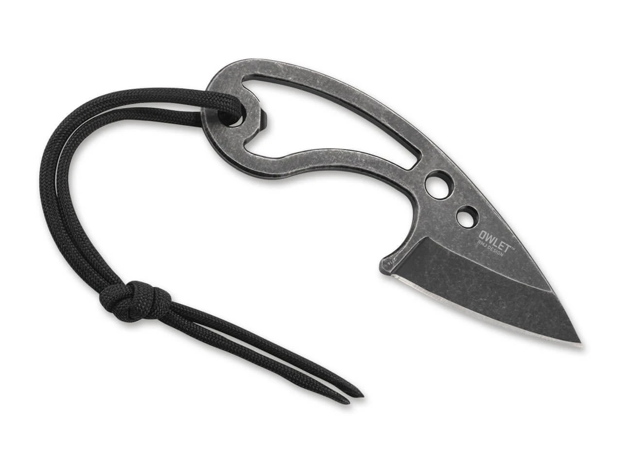 Das innovative Owlet von CRKT wird komplett aus 8Cr13MoV gefertigt und ist mit einem dunklen Stonewash-Finish versehen. Dank des skelettierten Griffs ist es besonders leicht und kann dank der vielseitigen GFK-Scheide sowohl als Neck Knife um den Hals als auch am Gürtel getragen werden. Das so stets einsatzbereite Messer kann zusätzlich auch als Flaschenöffner genutzt werden.