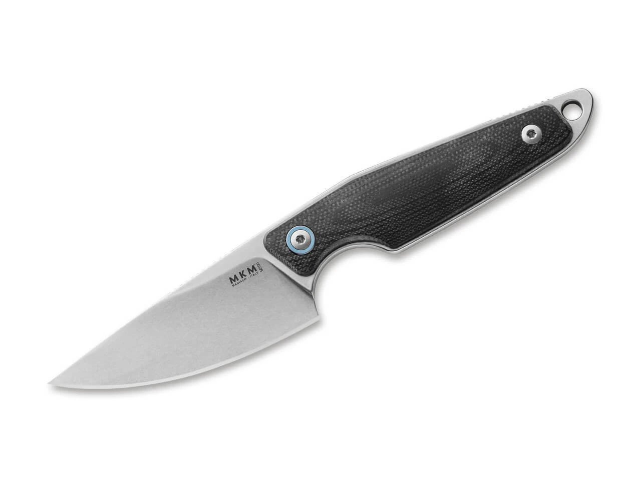 Die ausgewachsene Variante des beliebten MKM Mikro punktet mit einer Droppoint-Klinge aus Böhler M390 und wird von Designer Jesper Voxnaes mit einem schwarzem G10 Griff versehen. Das Neck Knife trotzt mühelos schwierigen Schneidarbeiten und wird mit einer hochwertigen Lederscheide geliefert.