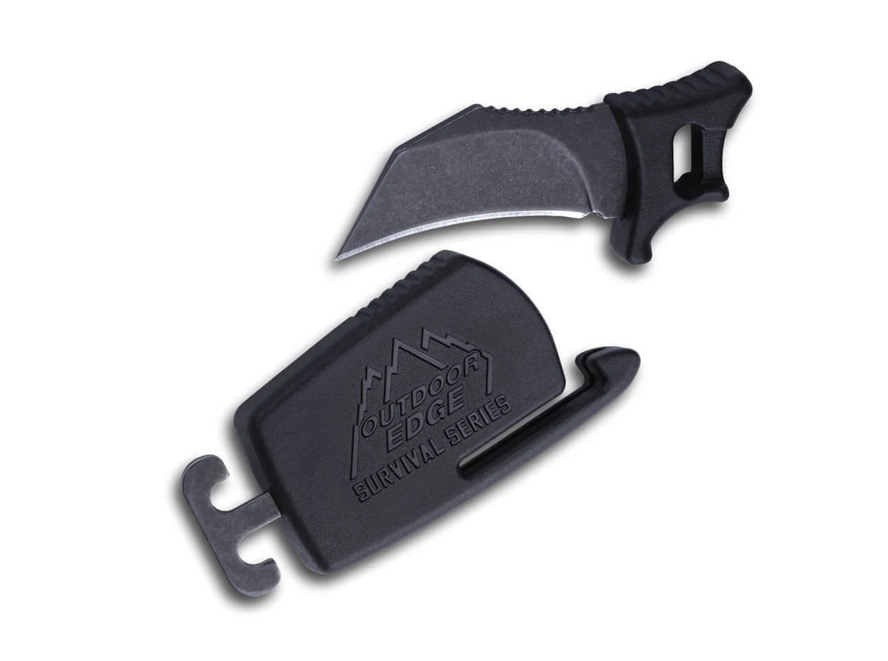 Bei dem ParaClaw Buckle muss das Paracord Armband erst einmal selbst gebunden werden, bevor es einsatzbereit ist. Das ParaClaw Buckle ist mit einer Hawkbill-Klinge aus 8Cr13Mov Edelstahl mit schwarzem Stonewash-Finish und einem Verschluss ausgestattet. Der patentierte Verschluss sichert die Klinge und hält das selbstgebundene Armband festgeschlossen, welches im geöffneten Zustand als Messergriff dient.