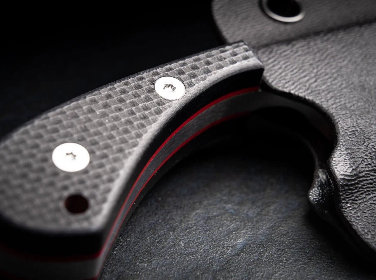 Das überaus handliche Böker Plus Sigyn ist ein leichtgewichtiges Neck Knife, das von Andre Schröter entworfen wurde und sich wie die bisherigen Modelle von Midgards Messer mit verschiedenen Griffschalen ausstatten lässt. Mit einem handelsüblichen 3D-Drucker lassen sich diese in den verschiedensten Formen, Farben und Materialien einfach selbst ausdrucken. Ausgeliefert wird das kompakte Dreifingermesser mit einem ergonomisch geformten Griff aus widerstandsfähigem G10. Die fein texturierten Griffschalen liegen auch bei Nässe sicher in der Hand und sind zusätzlich mit einer roten Fiberlage versehen. Riffelungen im Bereich der Daumenauflage erhöhen die Arbeitssicherheit zusätzlich. Die satinierte Droppoint-Klinge wird aus D2 gefertigt und ist mit einer dekorativen Hohlkehle ausgestattet. Mit Fangriemenöse, Kugelkette und passgenauer Kydex-Scheide.
