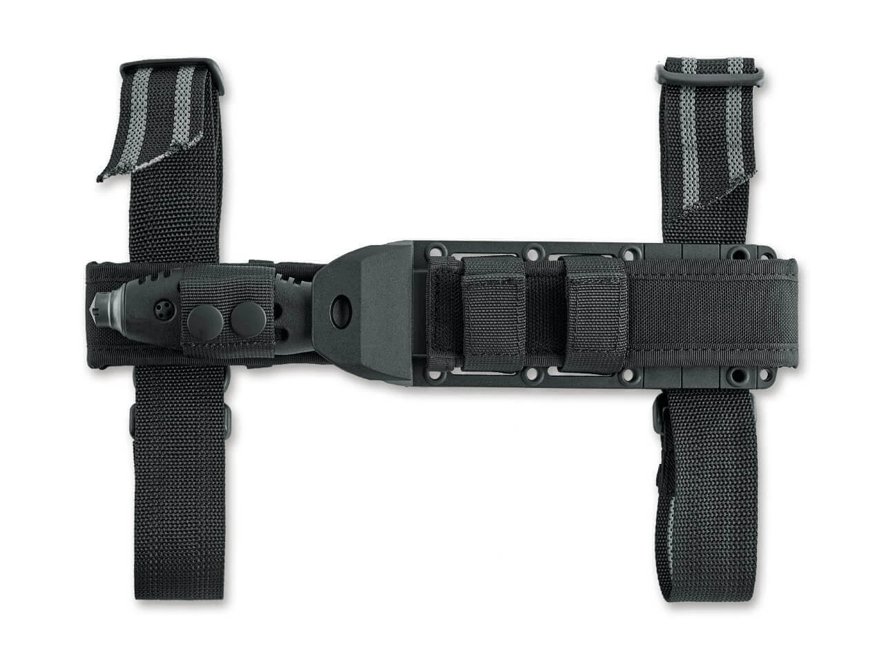 Die FKMD Sputnik Serie glänzt vor allem mit besonders hohem Gebrauchswert und einer extrem sicheren Handlage. Durch das schwarze TPR Griffmaterial ist das ausgewachsene Sputnik 13 auch bei Nässe oder Kälte sehr komfortabel und sicher zu handhaben, wozu die zahlreichen Mulden und Rillen ihren Teil beitragen. Das kleine integrierte Parierelement trägt ebenso eine Öse wie der Glasbrecher im Griffende, wodurch sich das feststehende Messer zum Beispiel auch an einem Stock festbinden lässt. Die satinierte Klinge aus N690 ist mit ihrer außergewöhnlichen Stärke von 5mm optimal dimensioniert, um Schneidpotential und Stabilität zu vereinen. Die Fehlschärfe und die Hohlkehle der Drop-Point Klinge unterstreichen den taktischen Charakter des Einsatzmessers. Die äußerst funktionale symmetrische Scheide ist aus GFK gefertigt und sitzt in einem Molle-kompatiblen Nylonhalter mit Gürtelschlaufe und abnehmbaren Beingurten.