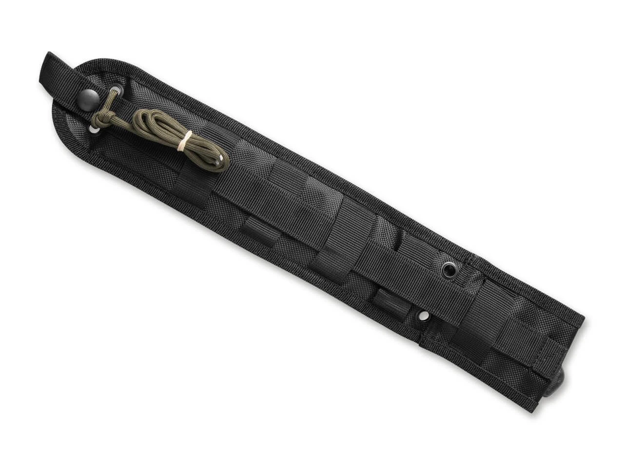 Der ergonomisch geformte Micarta-Griff ist mit der bekannten Rocky Mountain Tread Oberflächenstruktur versehen und liegt dank der groben Formgebung und der feinen Texturierung stets sicher in der Hand. Die ausgeprägte Zeigefingermulde ermöglicht es, das Longhorn Bowie für feinere Arbeiten auch kürzer zu greifen, während die geriffelte Daumenauflage die Arbeitssicherheit zusätzlich erhöht. Mit Fangriemen und praktischer Nylon-Scheide.